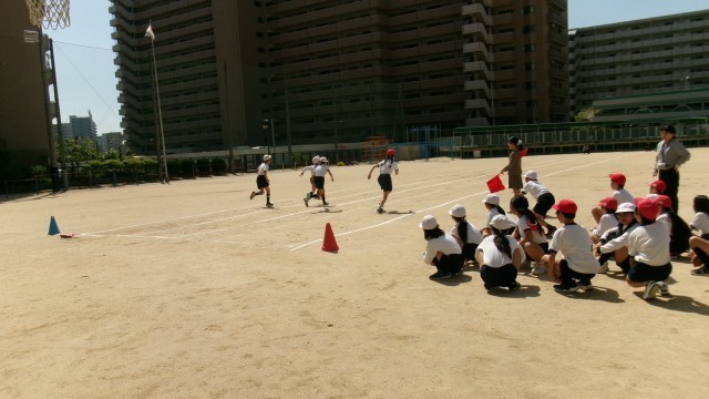 5年生の今日の体育は、50メートル走のタイムを計りました。