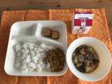 ★4月22日の献立★ カレースープスパゲッティ、キャベツのピクルス、りんご(カッ...