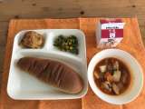 ★5月26日の献立★ ケチャップ煮、さんどまめとコーンのソテー、りんごのクラフテ...