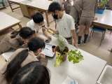 6年生の理科の授業です。アブラナの葉をビニル袋で覆って、袋の中の気体を「気体検知...