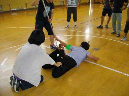 9月5日の放課後、此花警察の方を講師に迎えて、教職員と保護者対象に防犯の研修会をしました。10月の土曜授業に児童対象の防犯教室をするので、先だって行ないました。相手との距離や、自分の身の守り方等、2人組になって実際にしてみました。身のかわし方ひとつで自分の身も守られることを、体験してわかりました。