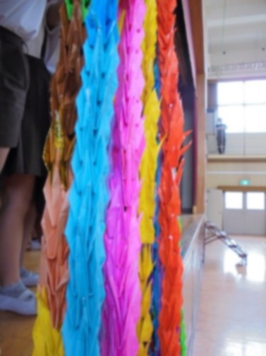4月から修学旅行に向けての取り組みとして、6年生は原爆に関すること、「ヒロシマ」に関することを学習してきました。また、1〜5年生は、6年生に持って行ってもらう千羽鶴を折りました。
