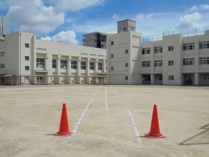 今日は、ひさしぶりに晴れになりました。空を見上げると、青い色がとてもすてきな夏の空。ここのところの雨で洗われた校舎がきらきらしてみえます。運動場では、熱中症に注意しながら、元気に体育の学習をしていました。