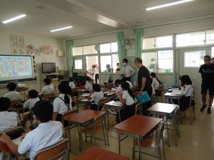 指導力向上の取り組みとして、学校では毎年テーマを決めて研究活動を行っています。本年度はICT機器の活用をテーマに取り組んでいます。今日はその第1回目の授業研究会でした。6年生がタブレットを使って算数科の「組み合わせ方」の学習を行いました。
