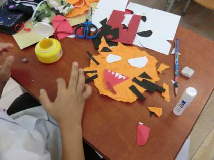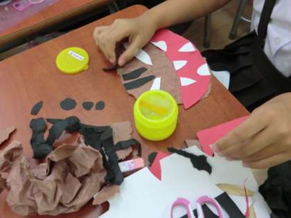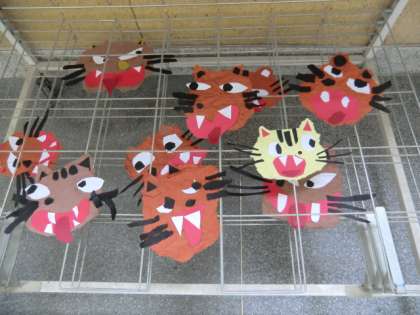 2年生が国語科の物語文「ニャーゴ」の学習を題材に、図工の時間に登場人物の貼り絵の制作に取り組んでいました。それぞれがしっかり考え、特徴をとらえた作品に仕上がっていました。