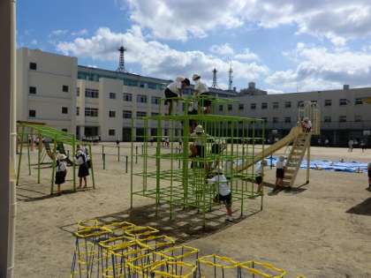 先日までコロナウイルスの感染拡大防止のため使用禁止にしていた運動場の遊具が使えるようになりました。子どもたちは待っていましたとばかり、休み時間になると遊具を使って元気に遊んでいます。中には手にマメができるまで「うんてい」の練習に励む子どももいます。これからも、使用前、使用後の手洗いをしっかりして、思いっきり遊びましょう。