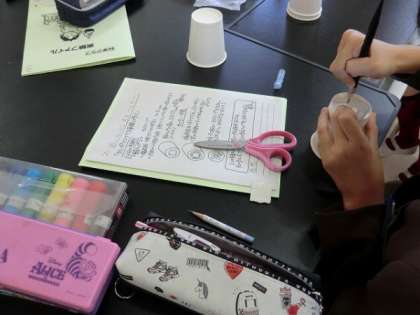3つ目のクラブは「科学クラブ」です。活動は理科室で行っています。科学の不思議を利用した工作などをしています。今日は紙コップを使ったカレイドスコープ(万華鏡)作りに取り組んでいました。