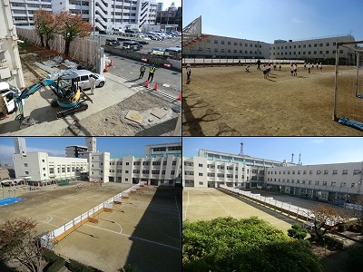 11月に入り、酉島小学校校舎建て替えの2期工事が始まりました。最初は運動場も普通に使えていたのですが、今週からは仮柵が設置され半分程度の広さになってしまいました。工事が本格化すると安全確保のためきちんとした柵が立てられます。これからは、体育の授業や休み時間の遊び方に工夫が必要になります。