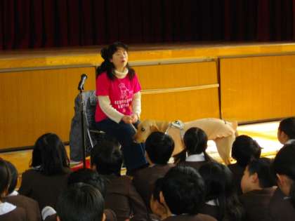 3年生は、国語で学習した「盲導犬のはたらき」をもっと深めようと、盲導犬ユーザーの方に来ていただいてお話を聞きました。保護者の方にも呼びかけて、たくさんの方が聴講されました。ゆっくり丁寧に話された詳しいお話に、聞き入っていました。