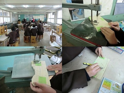 6年生が図工科の木工工作で「テープカッター」の制作に取り組んでいます。厚目の板にデザインを施し、安全に気を付けながら電動のこぎりを使用して、形を切り出していました。