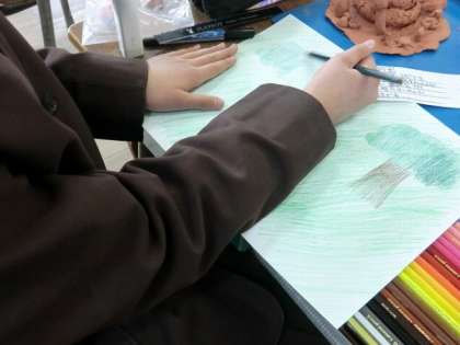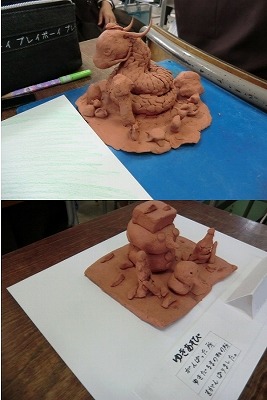 4年生が、粘土を使って制作した作品を展示するための準備を行っていました。そのときの様子と一部ですが作品を紹介させていただきます。