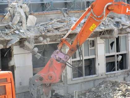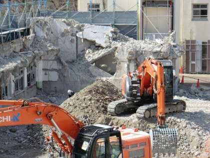 校舎の建て替え工事は、以前もお伝えしたように南校舎の解体作業を行っています。校舎の解体はほぼ終了し、現在は瓦礫(がれき)の撤去が同時進行で行われています。工事の進行状況については、定期的にお伝えします。