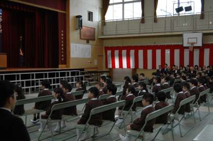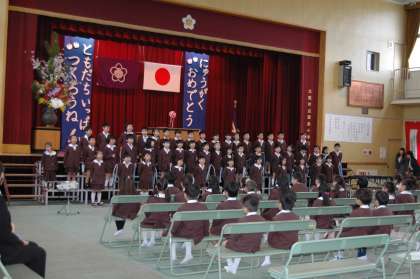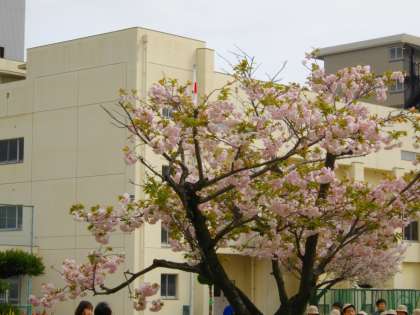 八重桜が満開を迎えた4月7日(火)、酉島小学校の入学式を行いました。50名の新1年生が新しい標準服を着て、元気よくやってきました。入学式は緊張気味でしたが、新2年生の呼びかけや、踊り・歌にようやく笑顔も見られました。