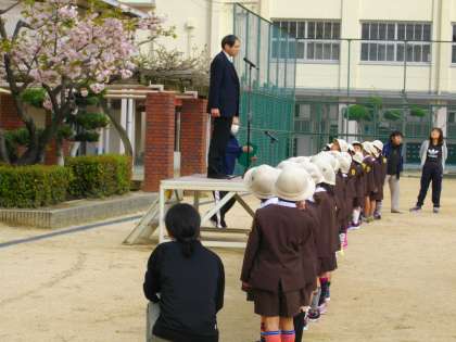 4月9日(木)には、全校児童との対面式がありました。2年生以上の児童が新しい学級に並んで、新1年生を迎えました。校長先生のお話の後、6年生からお迎えの言葉がありました。早く学校になれるように、みんなで見守っていきます。