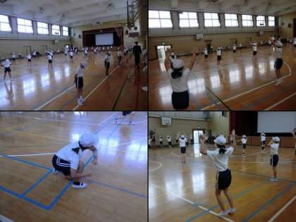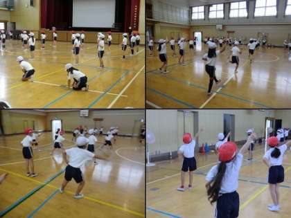 本日は台風の影響もあってか、不安定なお天気でした。そのため運動会の練習も午前中はすべて講堂で行われました。その様子を紹介します。写真は上から4年生、3年生、2年生の練習風景です。どの学年も演技の練習に取り組んでいました。