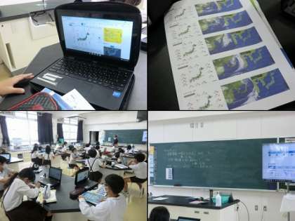 5年生が理科で気象の学習に取り組んでいます。今日は理科室でタブレットを使って天気の移り変わり方について調べ、わかったことをまとめていました。