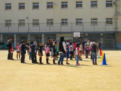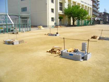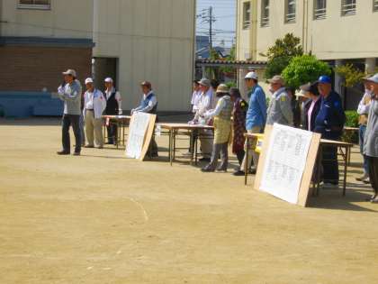 4月26日(日)に、酉島地区育成協議会恒例の「カレー作り」が、酉島小学校の運動場で行われました。地域の方が朝早くから準備に来られ、子ども達は9時に集まってきました。初めの会が行われ、いよいよスタートです。