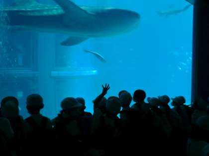 海遊館での見学の様子です。大きな生き物や珍しい生き物、かわいい生き物などがたくさん展示されていて、みんな夢中になって見学していました。