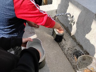 飯ごう炊さんでは、火も薪を使って自分たちでおこします。