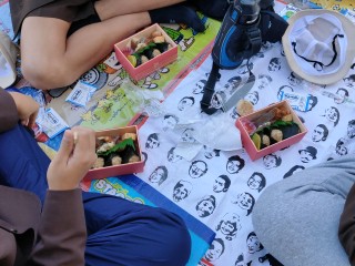 広島最初の食事は、お弁当です。みんなしっかり食べていました。