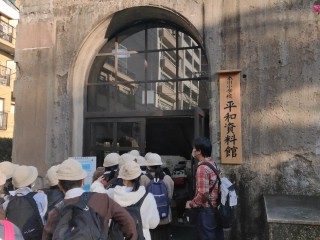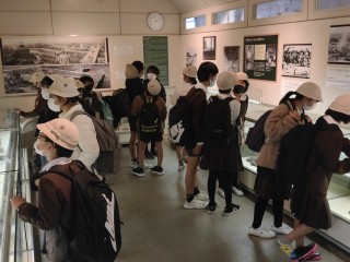 平和記念資料館の見学を終えると、本川小学校の平和資料館の見学をしました。