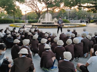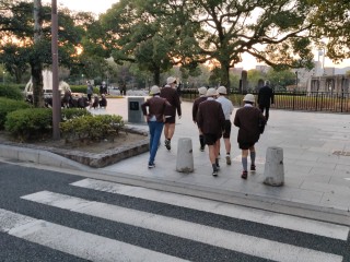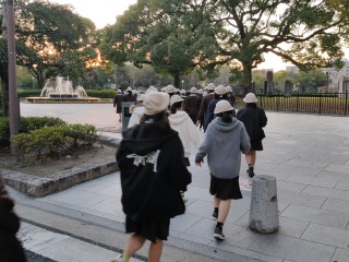 平和記念公園での活動を終えて、宿舎に入りました。部屋に荷物を運んだ後、避難訓練をしました