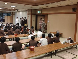 閉舎式の様子です。一晩お世話になった感謝の気持ちを宿の方にしっかりと伝えました。