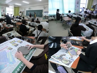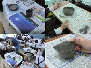 毎年6年生が卒業記念に行っている焼き物体験教室がありました。地域の方にお越しいただいて、指導を受けながら焼き物作りに挑戦しました。子どもたちは、卒業に向けての思いを込めながら粘土をこねて、思い思いの器を作りました。