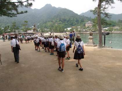 2日目は、世界遺産の宮島に行きました。初めに、厳島神社を見学しました。
