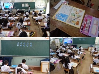 1年生が算数で、10の数の学習に取り組んでいました。数の量を確認したり、書き方を練習したりしていました。