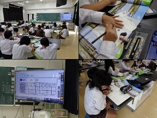 4年生が理科室で天気の学習に取り組んでいました。1日の気温の変化と天気の関係について考えていました。