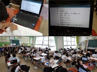 3年生が連絡帳を書いている様子です。タブレットの画面に映し出された連絡を自分の連絡帳に書き写していました。タブレットを使う機会が増えてくると、使い方にも広がりが出てきます。