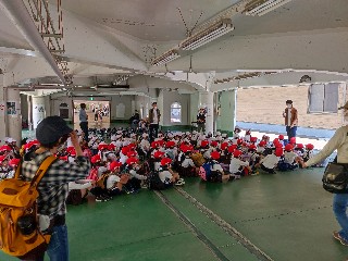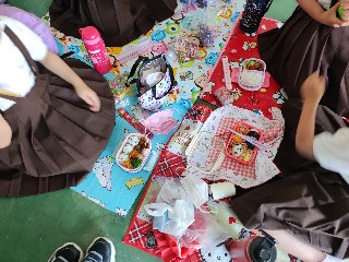 このシーズンはたくさんの学校が遠足にきています。今日はお天気もよく、暑くなるようなのでお弁当を食べる場所の確保が難しいと判断し、予定を変更して先にお昼ご飯にしました。