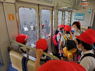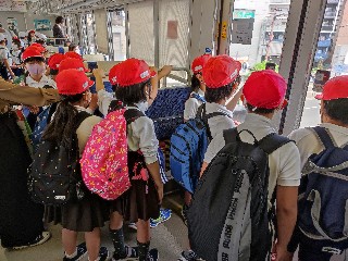 電車内の様子です。みんなマナーを守って、とても静かに乗っています。