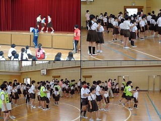 集会委員会が中心になって行う児童集会がありました。昨年度までの2年間は、コロナ対策でオンラインでの集会や、各教室でのクイズなど行っていました。今年度は本来の姿であるたてわり班での活動を体育館で行うことになり、第1回目の集会が本日行われました。コロナの影響が完全になくなったわけではないので、班を分けての集会ですが、随所に喜びの声が上がっていました。活動の内容は「じゃんけん列車」でした。