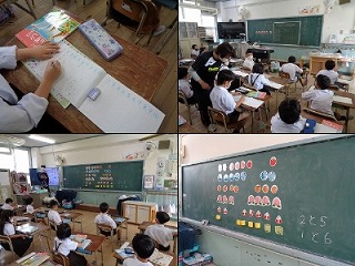 1年生が「いくつといくつ」の学習をしていました。7という数はどんな分け方ができるかを考えていました。この学習はたし算やひき算をするときの基本の考え方になります。