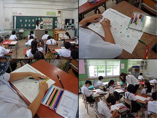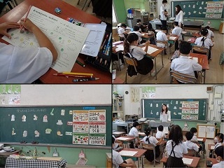 栄養教諭の先生に来ていただいて、2年生が栄養指導の学習に取り組みました。内容は3大栄養素の役割と分類でした。ワークシートを使って、どの食べ物がどのグループになるのかを色分けをしながら考えていました。