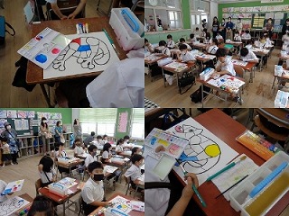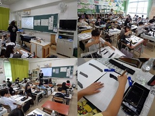 3時間目が1・2・3年生の参観です。内容は、1年生が算数科で「いろいろなかたち」、2年生が図画工作科で「絵の具を使って」、3年生が国語科で「書写(習字毛筆)」でした。