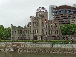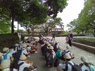 原爆ドームに到着しました。宿に大きな荷物を預けて、平和記念公園での活動に向かいます。