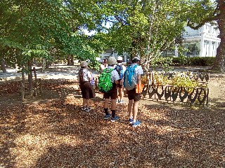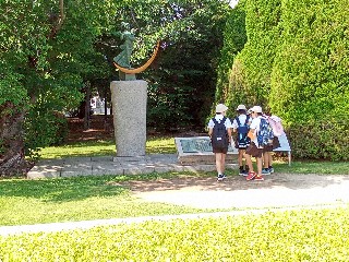平和記念資料館と本川小学校の見学を終えると、平和記念公園での最後の活動となるフィールドワークです。活動班ごとに、公園内にある指定されたポイントを探しながら、散策します。