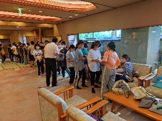 本日の宿舎「広島の宿 相生」に到着しました。子どもたちは部屋着に着替えて避難訓練をしました。
