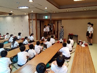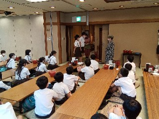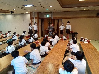 閉舎式の様子です。楽しかった相生での時間も終わりになります。みんなで宿の方々に、お世話になった感謝の気持ちを伝えました。