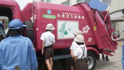 ごみが中に押し込まれていく様子を見たり、運転台に座らせていただいたりしました。運転台に座ると、ごみを収集していただいている方の苦労や思いがよくわかりました。貴重な体験でした。