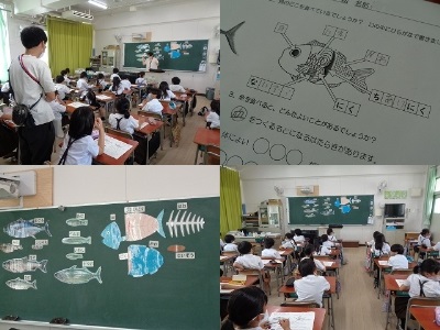 3年生で栄養指導がありました。栄養教諭の先生に来ていただいて、食材としての「魚」について学習しました。ワークシートをつかって魚の部位や栄養のはたらきについて考えました。