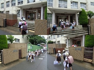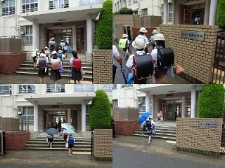 校舎の建て替えにより、2学期から正門が現在の場所から学校の南側に移転します。今の門は西校舎とともに取り壊しになります。長年にわたり子どもたちの登下校の様子を見守ってきた門とも今日でお別れになります。あいにくの雨模様でしたが、写真は最後の登校の風景です。