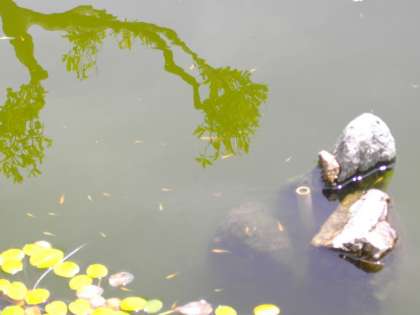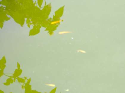 前に紹介した花菖蒲の花が終わって、別の場所に移動されて広くなった水面に、たくさんのメダカを見つけました。ずっと前からいましたが、どこに隠れていたのでしょう。かえったばかりの小さなメダカもたくさんいました。菖蒲の茎などに卵を植え付けていたのでしょうか。
