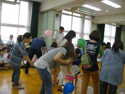 4年生は、「風船パタパタゲーム」をしました。