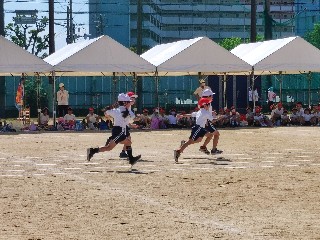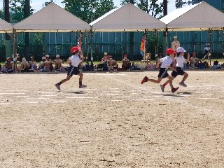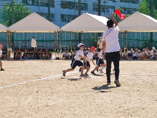 1年生の個人競技はかけっこでした。みんな力強く走りました。