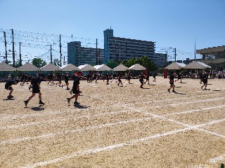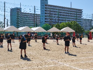 4年生による団体演技「fifty family」です。全員が黒色のTシャツを着用して、統一感のある演技でした。