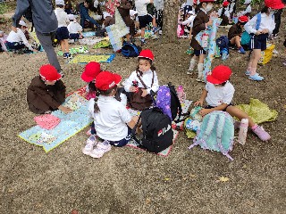 しっかりと遊んだ後は、遠足のお楽しみであるお弁当です。